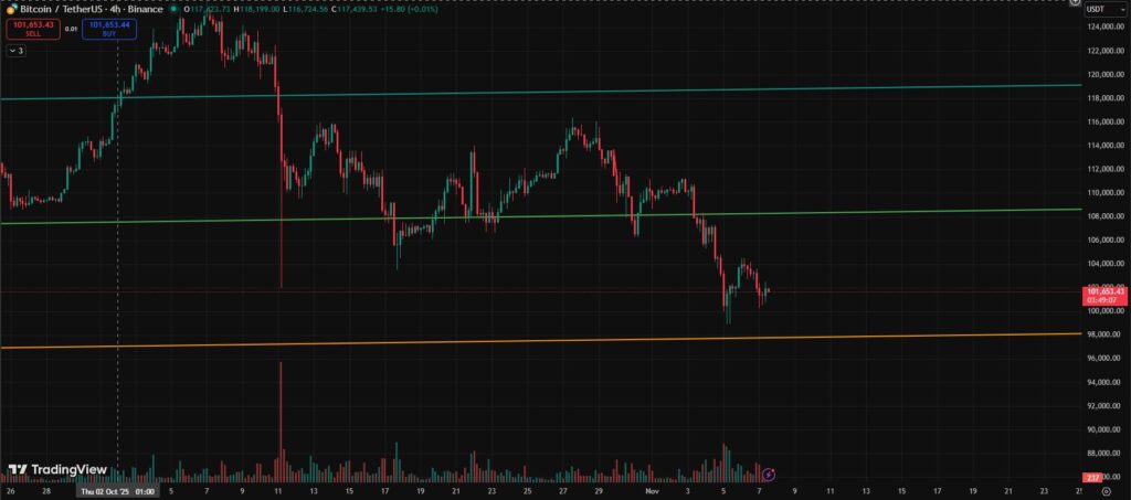 In this sense, patience could turn into an advantage—if the market confirms the 98K base and reclaims 110K in the following weeks.