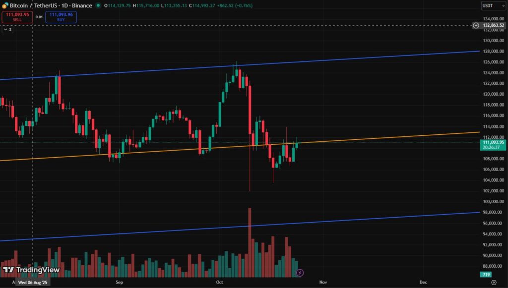 If Bitcoin manages to stay above the 110K zone for another 24–48 hours, the case for a rally toward the next channel becomes compelling.
